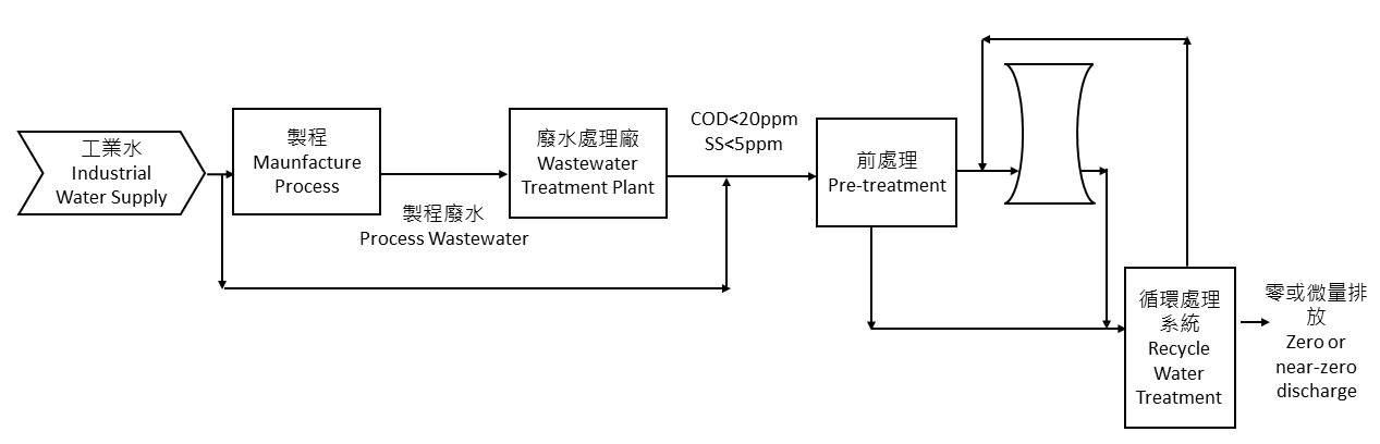 環琦實業股份有限公司 冷卻水塔零排放及近零排放系統 Zero discharge /near zero discharge system for cooling water system 冷卻水塔因控制總TDS所以必需排放,往往占了工廠排放大宗,傳統處理方式,排放減量有限,環琦整合用水技術,可達到近零排放,提升系統腐蝕、結垢及微生物控制效果,更達到近零排放,將入水塔的工業 水或製程廢水回用,完全用於蒸發性,產生了最高的水處理效用,此為綠色科技,節水、節能減碳。 Cooling towers must discharge blow down to control the TDS factor, which often accounts for a large amount ofindustrial factory blow down. Traditional method for effluent reductions is limit. Huantec has integrated watertechnology that can improve system control efficiency of corrosion, scaling and bio growth. Furthermore, it canachieves near-zero emission. When the high effluent from industrial and process wastewater treatment systemis reused as the cooling tower making and completely vaporized, it results in the highest water resourcesutilization. This is green technology, saving water, energy and carbon reduction. 製程廢水全回收近零排放系統 Process water reused treatment -near zero discharge system