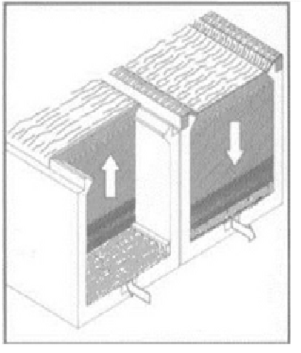 - 濾程是一般濾槽的 5~10 倍,佔用空間小,處理流量大。