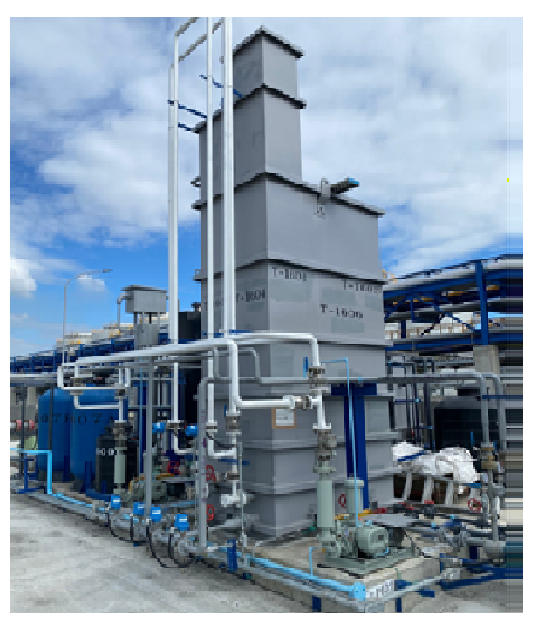 環琦實業股份有限公司 冷卻水塔零排放及近零排放系統 Zero discharge /near zero discharge system for cooling water system 冷卻水塔因控制總TDS所以必需排放,往往占了工廠排放大宗,傳統處理方式,排放減量有限,環琦整合用水技術,可達到近零排放,提升系統腐蝕、結垢及微生物控制效果,更達到近零排放,將入水塔的工業 水或製程廢水回用,完全用於蒸發性,產生了最高的水處理效用,此為綠色科技,節水、節能減碳。 Cooling towers must discharge blow down to control the TDS factor, which often accounts for a large amount ofindustrial factory blow down. Traditional method for effluent reductions is limit. Huantec has integrated watertechnology that can improve system control efficiency of corrosion, scaling and bio growth. Furthermore, it canachieves near-zero emission. When the high effluent from industrial and process wastewater treatment systemis reused as the cooling tower making and completely vaporized, it results in the highest water resourcesutilization. This is green technology, saving water, energy and carbon reduction. 製程廢水全回收近零排放系統 Process water reused treatment -near zero discharge system