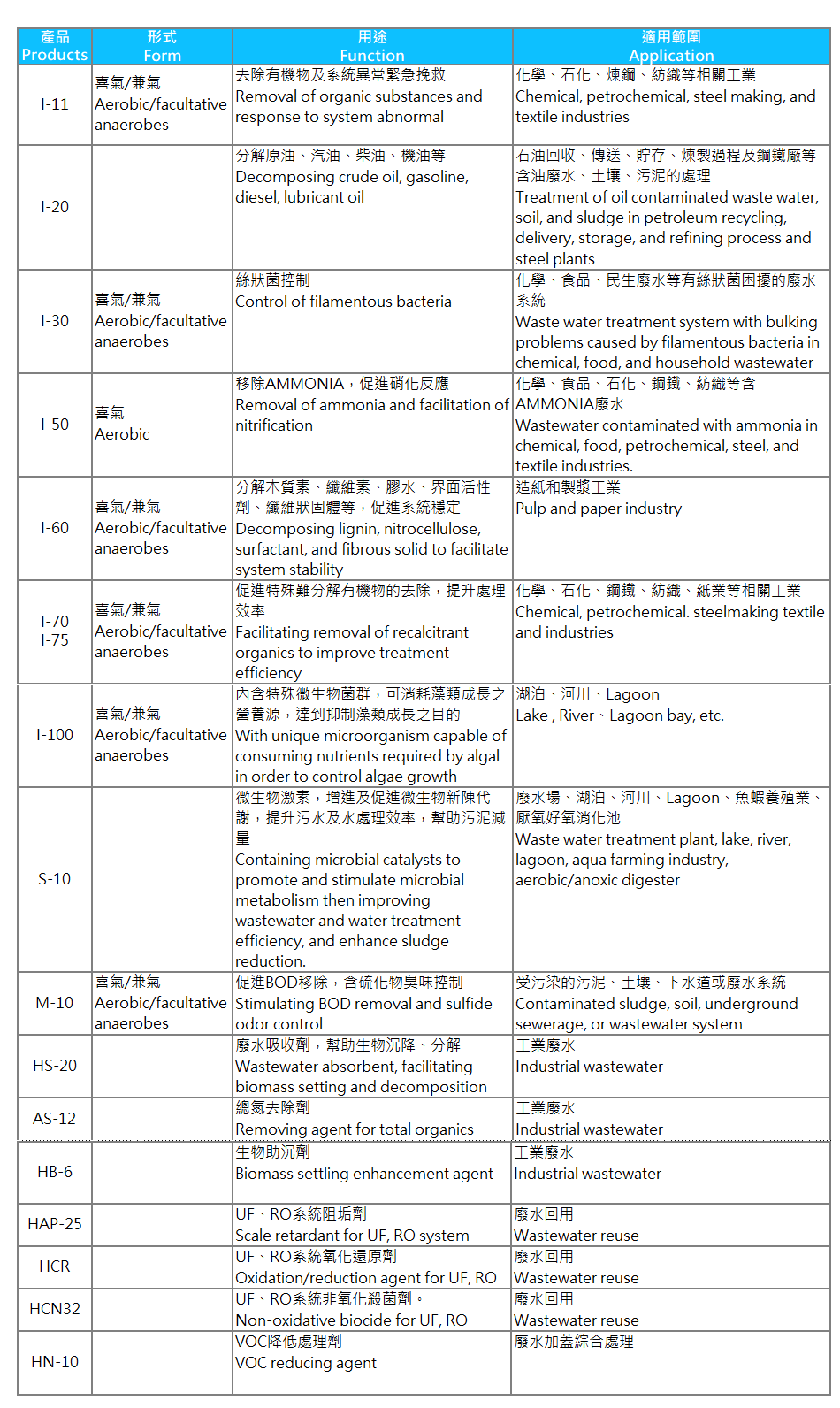 環琦實業股份有限公司 廢水系統用微生物產品及周邊化學品應用產品 Microorganisms products and peripheral chemical application products for wastewater systems